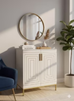 This modern shoe cabinet is designed to keep your entryway neat while adding a touch of elegance to your space. Featuring a sleek off-white finish, refined panel detailing, and gold-accented handles and legs, it blends functionality with contemporary luxury. The enclosed storage keeps shoes hidden, organized, and dust-free, making your home look instantly more polished. Perfect for entryways, hallways, or bedrooms where style matters just as much as storage.