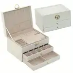 The top lid features necklace hooks and an elastic pocket to keep chains in place, while the ring slots and adjustable sections allow you to organize different accessories separately. The pull-out drawers provide extra storage for larger items like bangles and statement pieces.